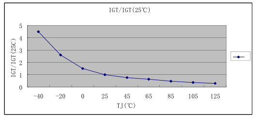 I GT (80 ℃)/I GT (25 ℃) ≥0.3 以及 I GT (-20 ℃)/I GT (25 ℃) ≤4.5正是因为可控硅的温度特性差,限制了使用者使用可控硅的温度范围,同时也限制了选择可控硅触发电流的范围。因此,一般客户选择触发电流中间范围的 30-60uA 以适应高低温环境变化的应用要求。